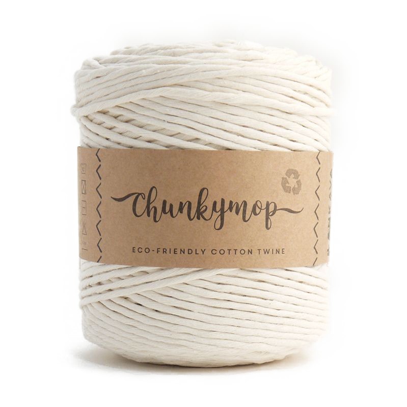 Chunkymop je súkaná rozčesateľná barbante priadza vyrobená upcyklovaním bavlny s prímesou polyesteru. Výborná na makramé, tkanie, háčkovanie a štrikovanie bytových doplnkov ako koberce, deky, tašky, poťahy na vankúše a pod. Priadza má priemer Ø 4 mm. Tenšiu verziu nájdete v našej ponuke pod názvom Minimop.